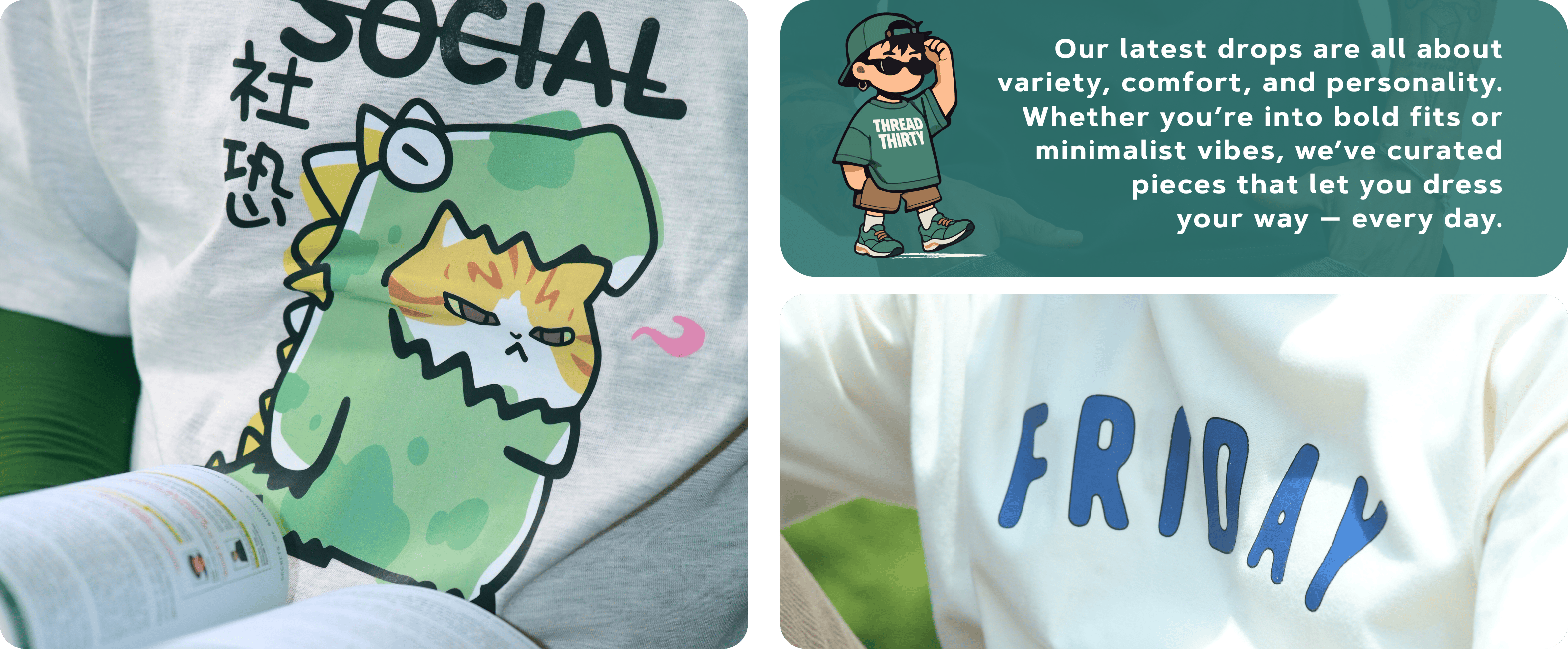 ThreadThirty is built for those who believe fashion should be fun, affordable, and ever-changing. We make it easy to switch up your style without spending a fortune. Whether you're dressing for chill weekends or everyday essentials, we’ve got something for every mood and moment.